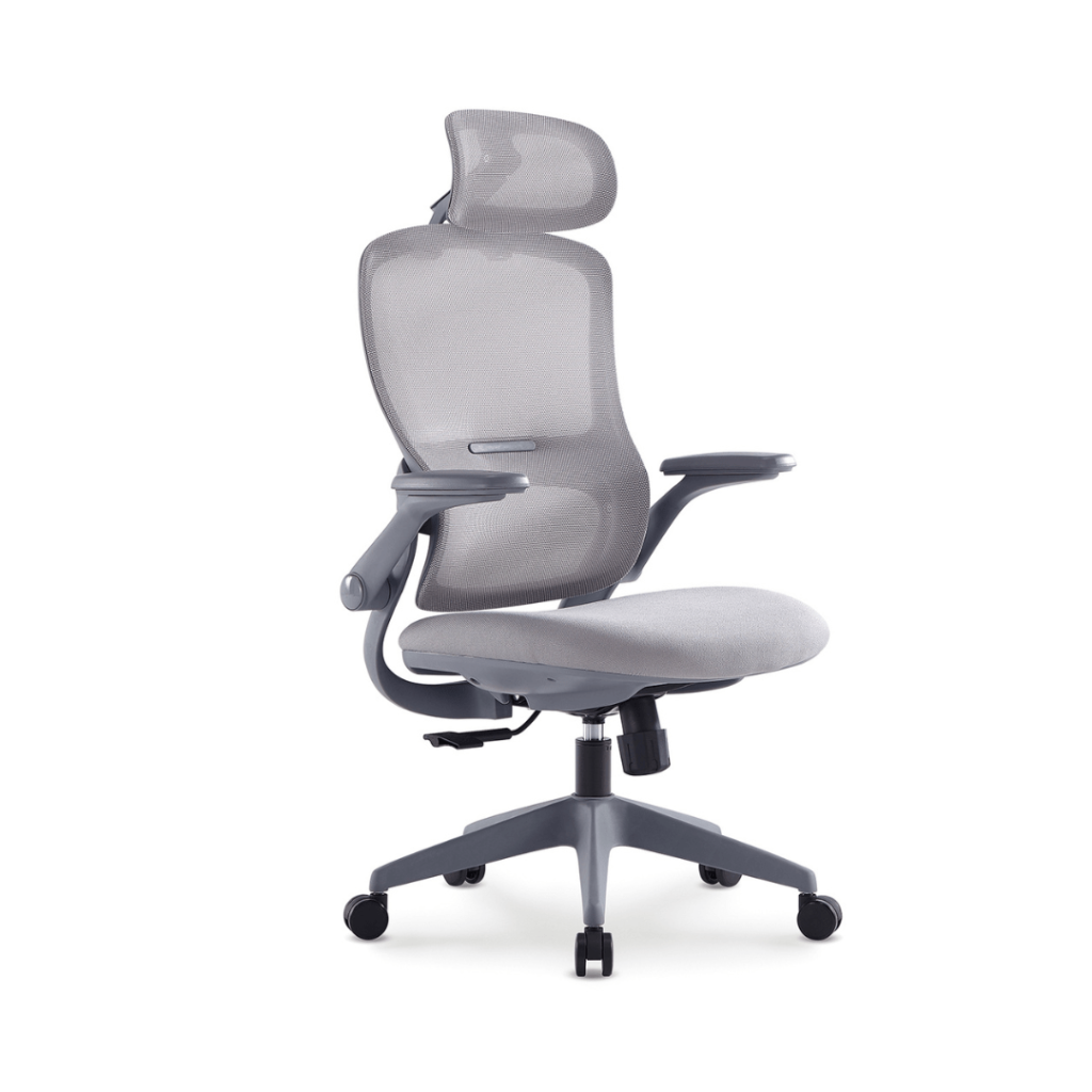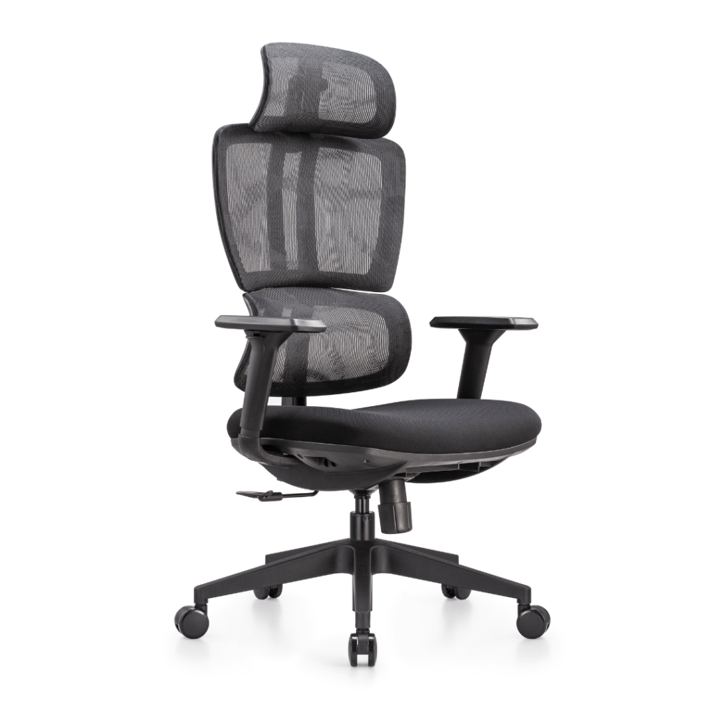 כסא מנהלים מפואר גבוה, ריפוד בד רשת, משענת ראש, ידיות תלת מתכווננות, מנגנון סינכרוני, מנח רגליים.