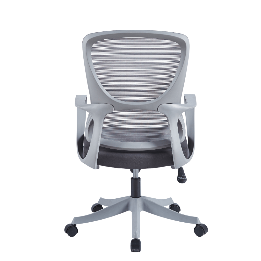 כסא עבודה-מחשב, גב רשת – מושב בד, מנגנון נדנוד, ידיות פליפ, בסיס ניילון