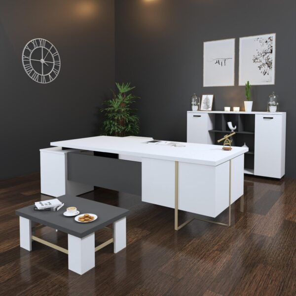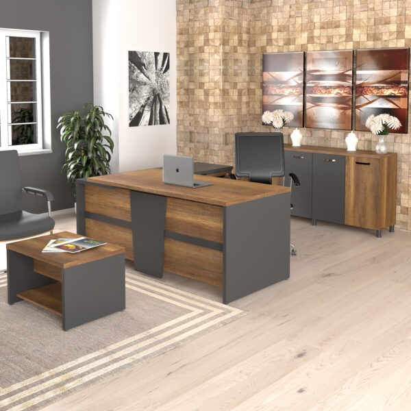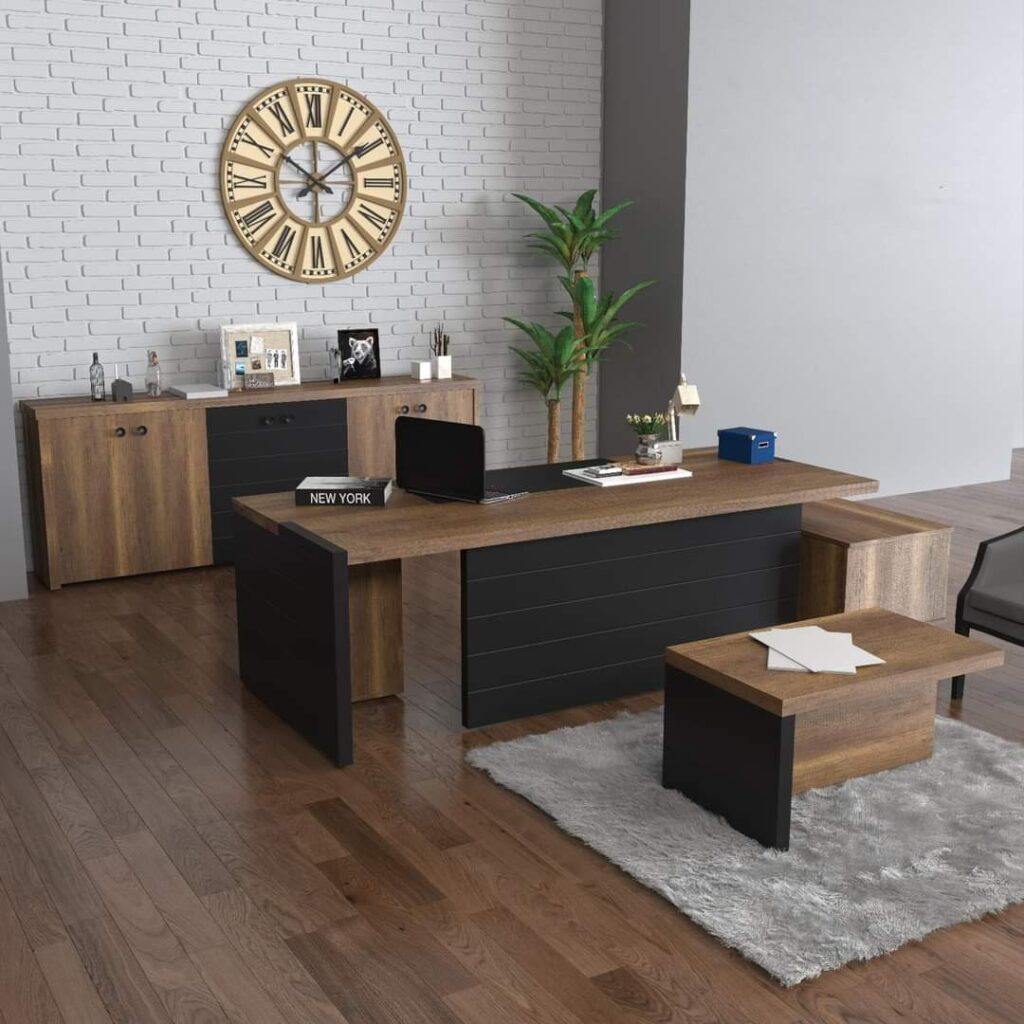 משרד מנהלים Varim הוא רהיט מודרני ויוקרתי, המתאפיין בעיצוב פונקציונלי ומרשים. המשרד כולל שולחן עבודה מרווח, ארונות אחסון מתקדמים וכיסאות ארגונומיים, כל אחד מהם מעוצב בקווים נקיים ומודרניים. מערכת מנהלים Varim מיוצרים מחומרים איכותיים כמו עץ, ומספקים פתרון עבודה נוח ואלגנטי, שמעניק תחושת מקצועיות וסטייל בחלל המשרד. המשרד מתאים למנהלים שמחפשים סביבת עבודה מעוצבת, פרקטית ויוקרתית.